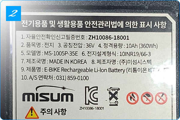 안전 인증(ZH10086-18001)을 획득한 배터리입니다