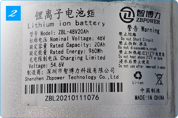 생산일자는 알 수 없으나 48V에 20Ah로 표기되었습니다